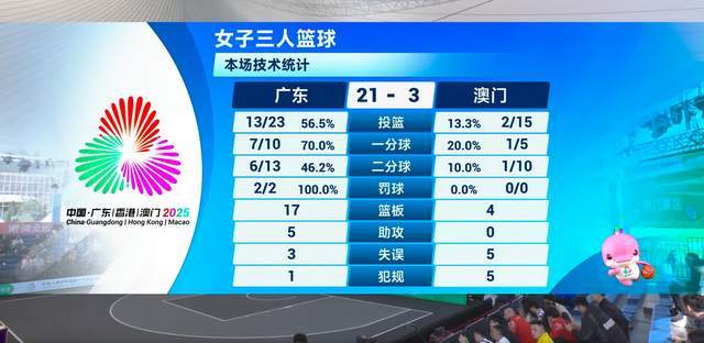 比赛开始,胡珂周月明连进2记两分球,打得十分主动。澳门队的小姑娘有些跟不上,被广东队摁着摩擦。广东队轰出16-0,随后澳门队才拿到第一分。随着周月明扔进2分,广东队以21-3轻松击败对手,拿到开门红。