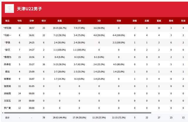 天津队这边只有2人得分上双,乔衍勋23分10篮板3助攻,马如一22分4篮板3助攻,李铁4投2中,2罚2中,拿到6分6助攻,孙承信16分3篮板5助攻。