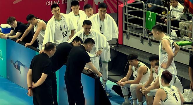 韩德君和付豪一上场就联手贡献4分,但是巨大的隐患来了,举足轻重的后卫高诗岩因为身背第四次犯规不得不下场休息,否则再犯一次规这场比赛就打不了了。杨鸣只能上主打二号位的李虎翼了,让鄢手骐打一号位。