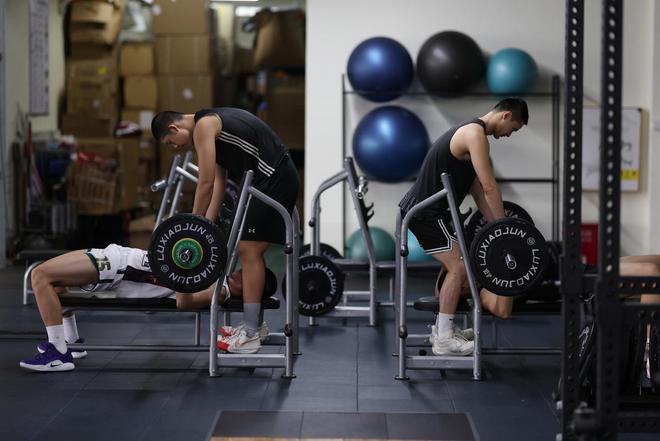 11月12日,广东东莞篮球学校,中学生在力量区认真训练。中国日报记者 魏晓昊 摄