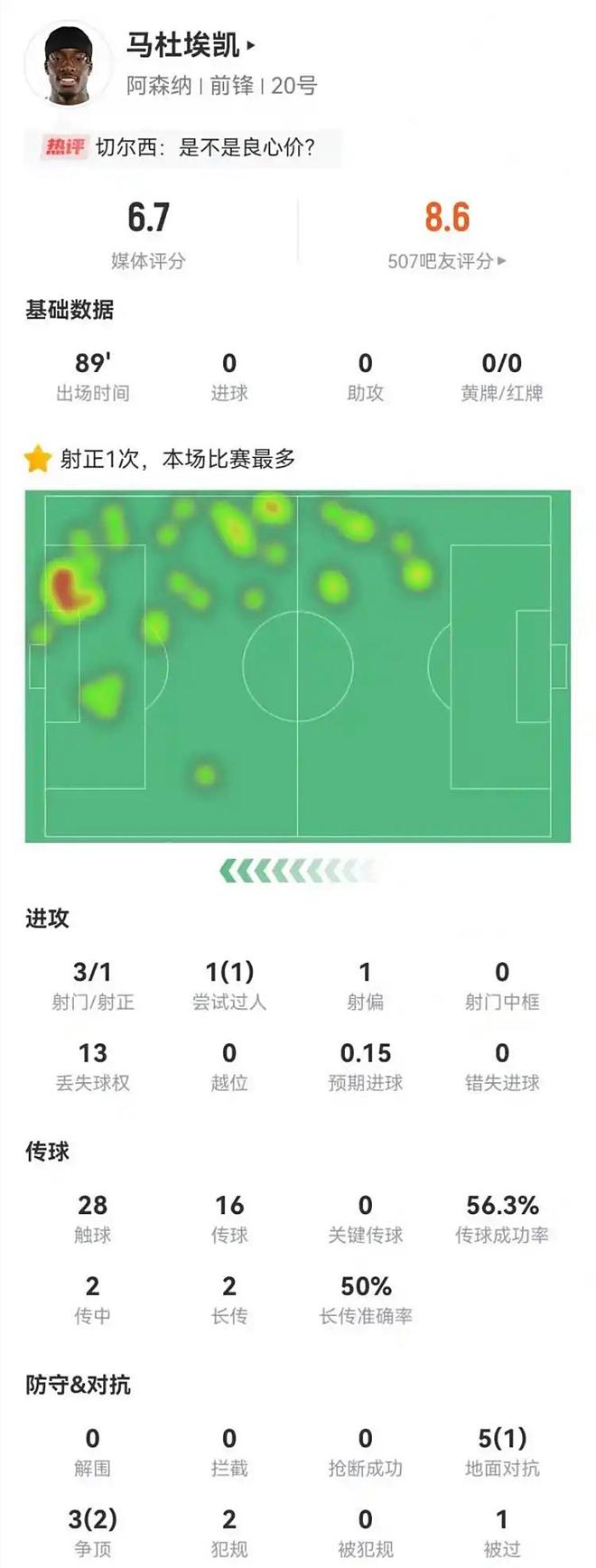 值得注意的是,马杜埃凯的成长轨迹与萨卡颇有相似之处——同样出身英格兰青训体系,同样具备极强的单兵作战能力。如果阿尔特塔能借鉴培养萨卡的经验,为马杜埃凯设计更灵活的战术角色,比如让他在边锋与前腰之间自由切换,或许能进一步释放他的创造力。毕竟,在厄德高可能轮休的场次,枪手需要新的进攻发起点。所以本雅各布强调,马杜埃凯的潜力值得挖掘。而且这位跟队记者承认,阿森纳拥有不少边缘国脚,世界杯年是他们爆发的契机,阿尔特塔需要抓住这个心态方面的好时机。