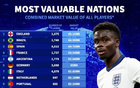 德转统计球员总身价前20国家/地区:英格兰巴西前2,日本上榜