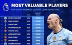 本赛季英超各队历史身价最高球员:哈兰德第1,4人1.5亿第2