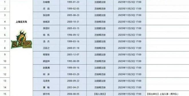 北京时间11月23日,据记者薛思佳报道,NBL新军上海玄天鸟球员名单流出,前CUBA全明星球员、百万网红球员赖益烨在列。