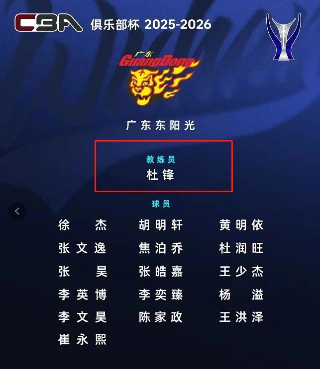 近来关于宏远主教练杜锋升任广东省篮协书记一事在各大篮球论坛引起热议。有球迷认为“杜书记”想走体制内的路子,宏远只是他的“踏脚石”,在升任篮协书记后,杜锋便会离开宏远,专心走他的新路。对于这一流言广东宏远则是用官宣来回应。近日CBA官方宣布了各支球队参加俱乐部杯的大名单,广东宏远的官方名单上,“主教练杜锋”赫然在列,证明官方确认了杜锋并不会离任,毕竟杜锋和广东的合同还有整整一年!