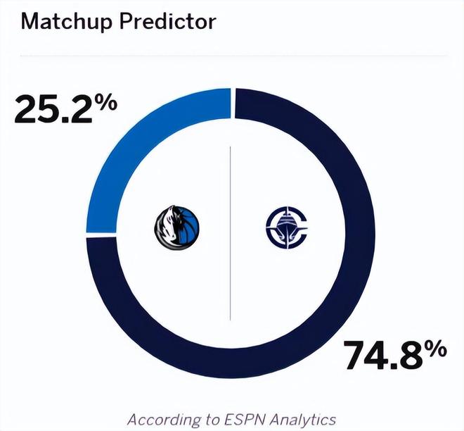 赛前,美媒ESPN对本场比赛进行了预测,快船队胜率高达74.8%,独行侠胜率则仅有25.2% ,这差距也是让人有些意外。