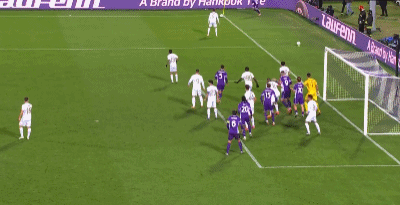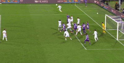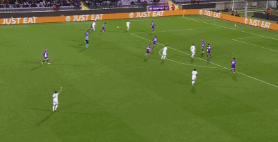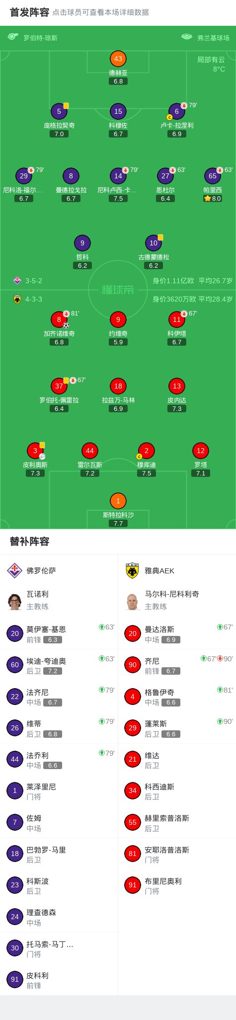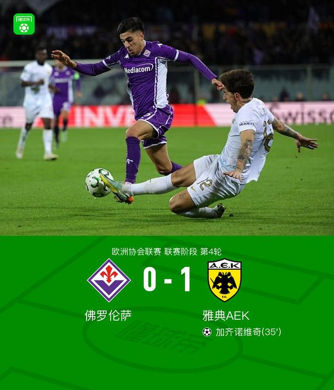 第35分钟,加齐诺维奇头球破门,雅典AEK1-0佛罗伦萨